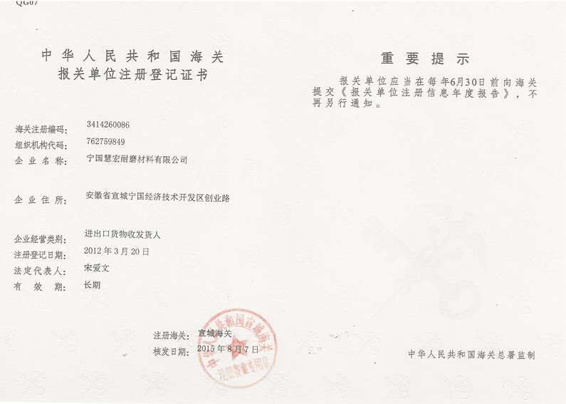 寧國慧宏耐磨材料有限公司(安徽)位于風景優(yōu)美的黃山風景區(qū)北麓,中國耐磨鑄件之都-寧國市經(jīng)濟技術(shù)開發(fā)區(qū)...